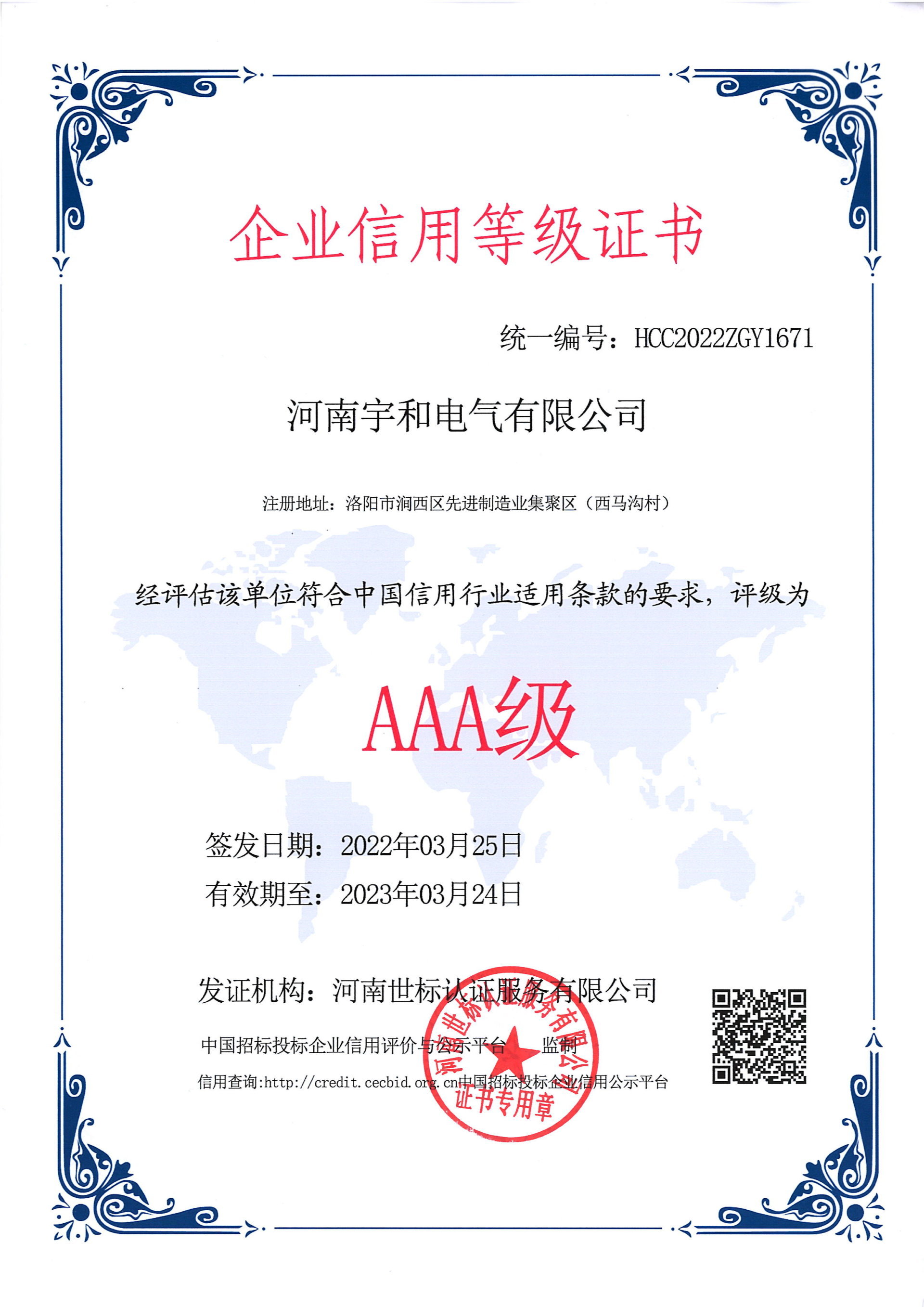 企业信用等级证书